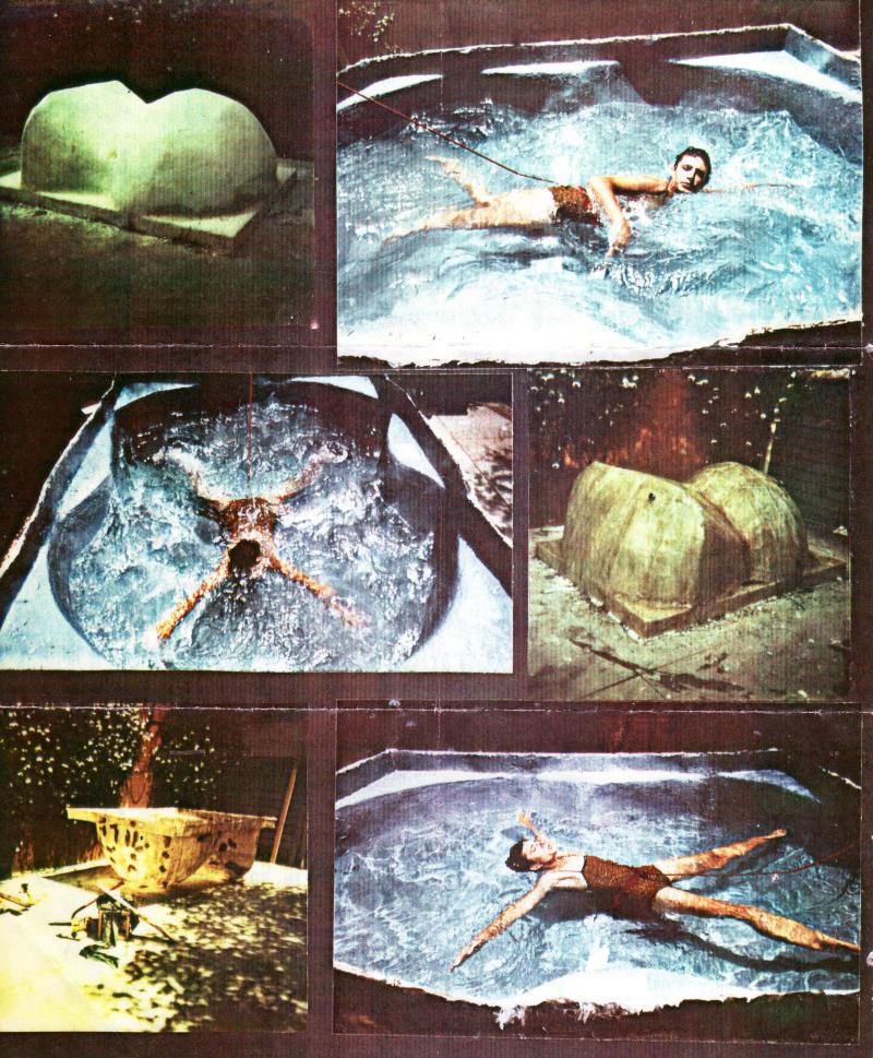 I built this prototype mini pool in the early '80s. The strange shape was an attempt at minimizing the amount of water while still allowing enough room for various swim strokes. The shape is roughly what you get when imagining the sideways and forward reach of arms and legs.