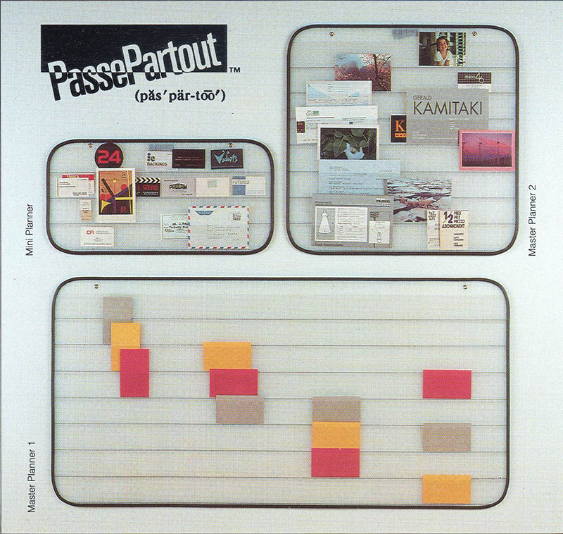I initially designed this as an organizational aid for film editing. 3x5 cards or photos would represent the scenes and the editor could then quickly re-arange the scenes, keep notes, etc. It is also very handy for keeping scraps of paper, photos, and other junk off a desk.